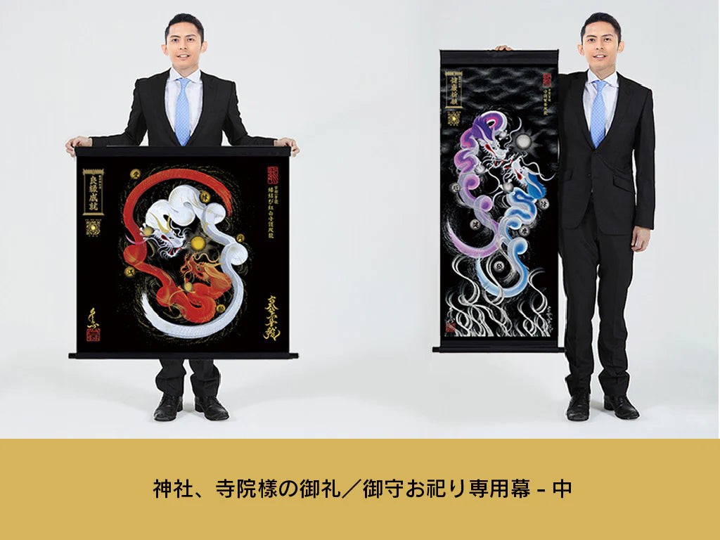 本サイト“昇運・守護・縁結びの京都一筆龍”にて展開いたしております各種商品は、私が描いた一筆龍原画と可能な限り細部に至るまで同様の精度を実現すべく徹底精査、監修の上、表現、創出に努め完成いただいております。