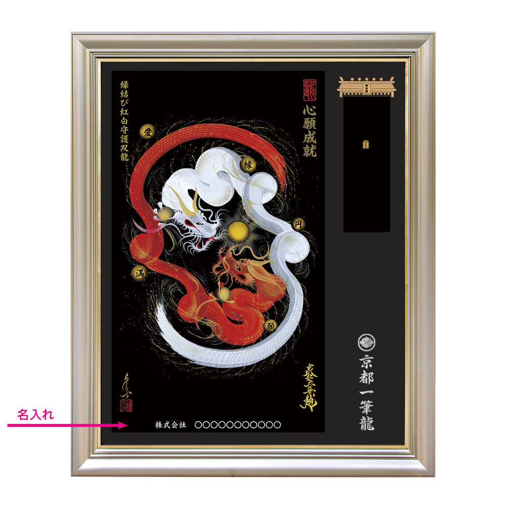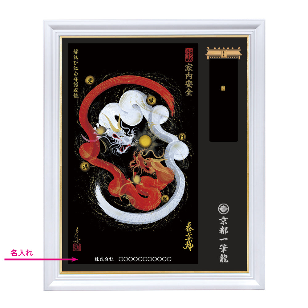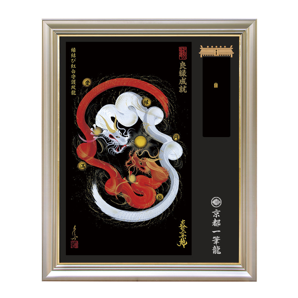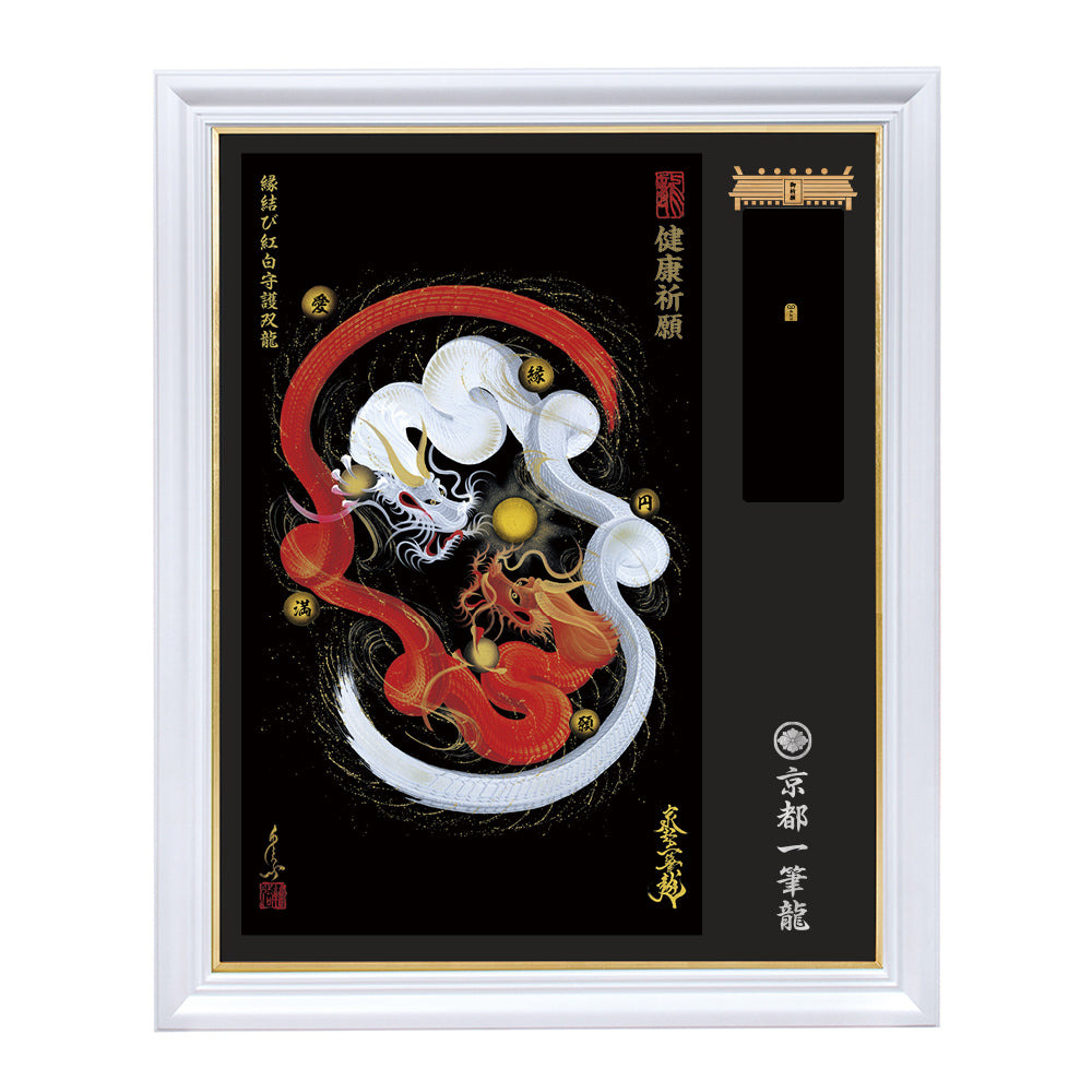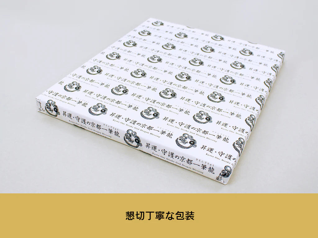 - 『京都一筆龍の御加護/御利益の象徴=胴体部分を一切途切れさせず一筆で描く動画』のQRコード印字ステッカー(2色/4サイズ)を同封お納めいたしております