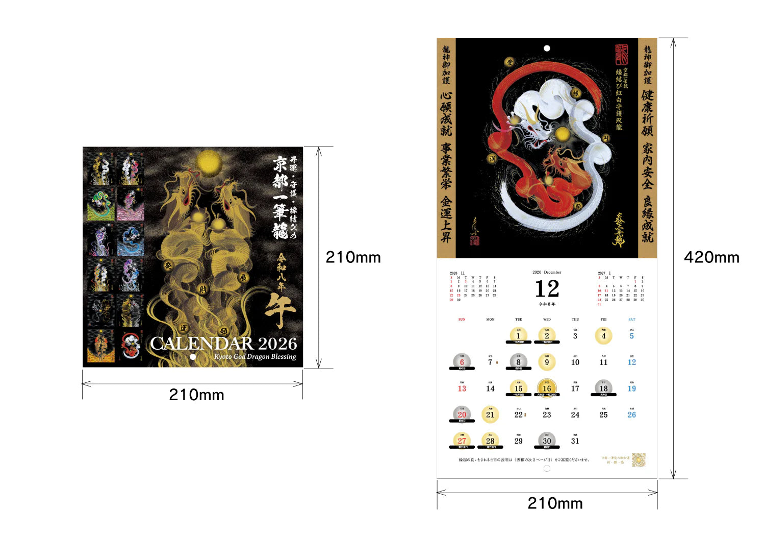 【2026年(令和八年)】京都一筆龍の御加護カレンダーの表紙/各月毎に選定、記載いたしております一筆龍描画の種類につきまして【2025年(令和七年)】版と変更はございません。