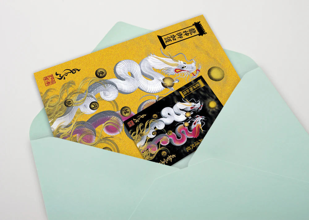 <昇運龍14種(双龍5種/1体龍9種)> <守護龍10種(双龍2種/1体龍8種)> <縁結び龍2種 (双龍2種)> - サイズ及び背景色違いの4枚セット 背景色2種類:黒色/金色 サイズ2種類:大/小