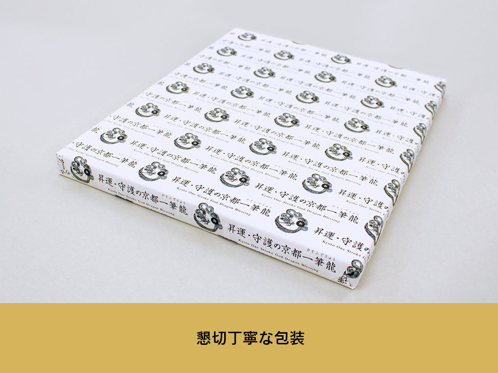 本サイト“昇運・守護・縁結びの京都一筆龍”にて展開いたしております各種商品は、私が描いた一筆龍原画と可能な限り細部に至るまで同様の精度を実現すべく徹底精査、監修の上、表現、創出に努め完成いただいております。