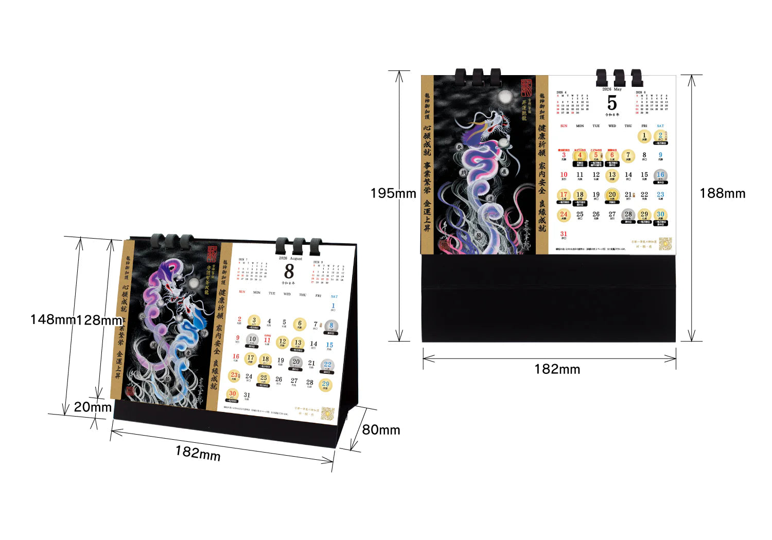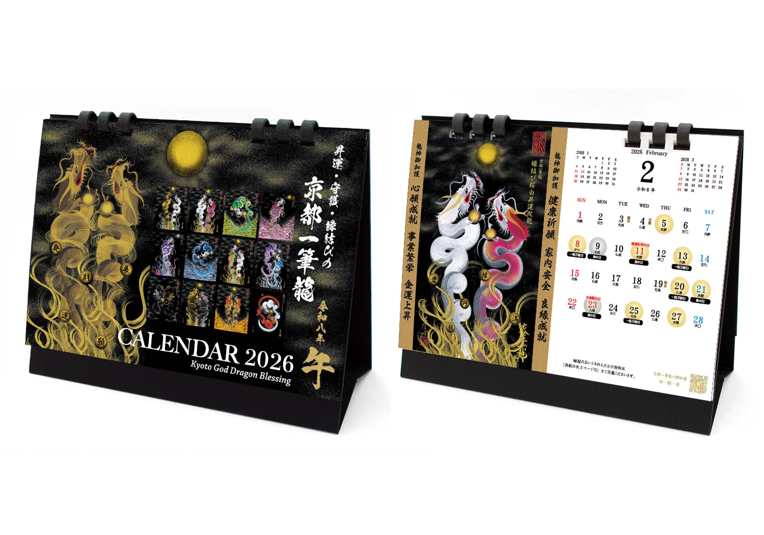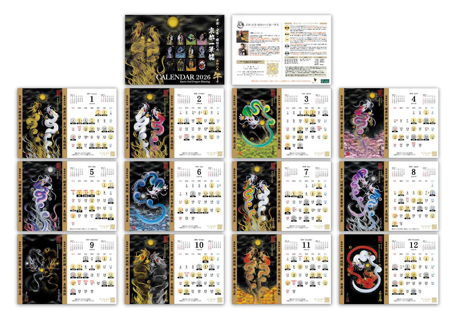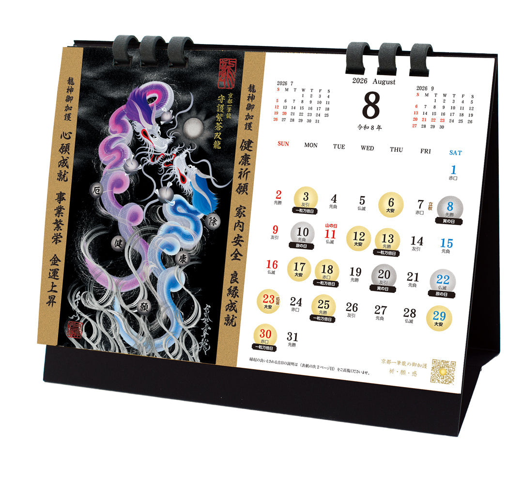 【2026年(令和八年)】京都一筆龍の御加護カレンダーの表紙/各月毎に選定、記載いたしております一筆龍描画の種類につきまして【2025年(令和七年)】版と変更はございません。
