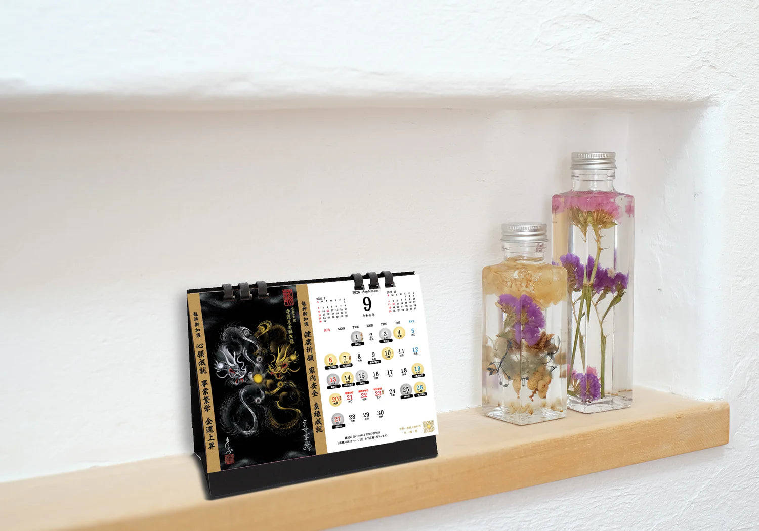 ・御加護、御利益を感じれる ・神々しい ・高揚感 ・守られている ・躍動感/迫力 ・圧倒的な鮮やかさ 綺麗 ・カッコいい ・強さ ・煌びやか ・繊細 ・勢い ・清らかさ - 縁起が良い吉日とされる日(天赦日、一粒万倍日、大安、寅の日、辰の日、初午、節分、桃の節句、端午の節句)を記載し、該当日を龍が見つめる『月願宝珠』、手に持つ「宝珠」をイメージした意匠にて表現